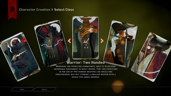 Une première succession d'écran permet de choisir ce que sera notre personnage : race et sexe, archétype, mode de difficulté et état du monde (c'est ici qu'on peut choisir un monde créé dans Keep).
